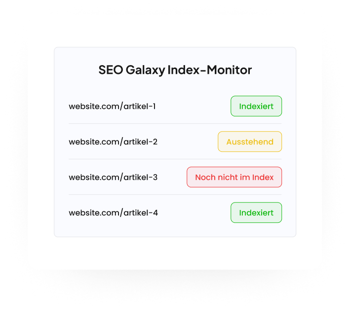 Wir überwachen die Indexierung und stellen sicher, dass deine Links sichtbar werden. Sollte es Probleme geben, kümmern wir uns darum.